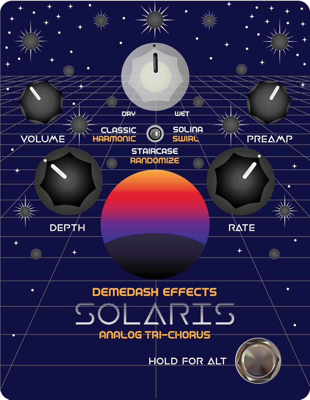 This pedal began in 2019, in an to attempt to replicate the the classic Solina String Ensemble’s Tri-Chorus section in a smaller form factor, and use the capabilities now possible thanks to the advent of digital control to expand on what it could do.